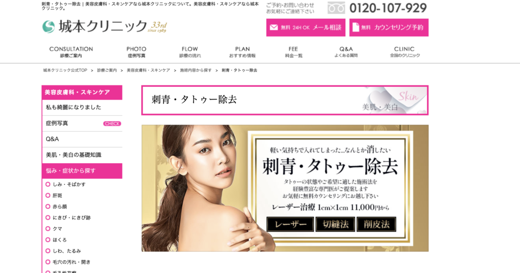 – 城本クリニック名古屋院のタトゥー除去の特徴 –